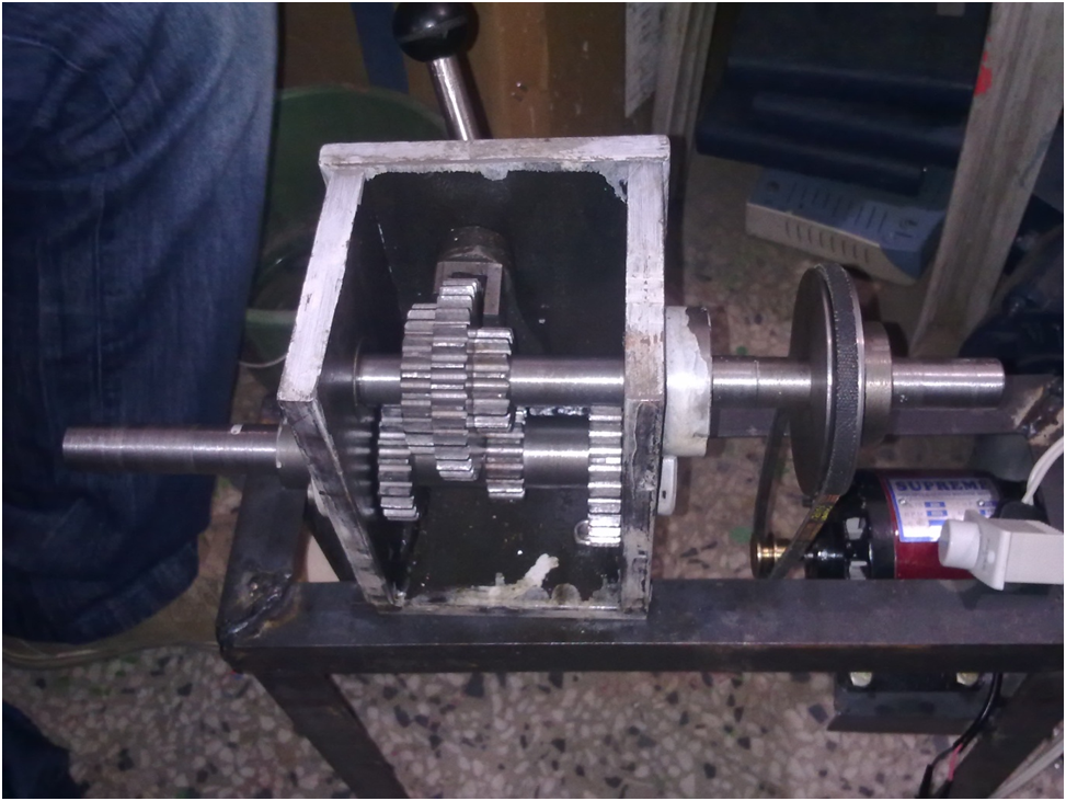 - The vehicle is built on a wooden base with two visible wheels at the rear for mobility.